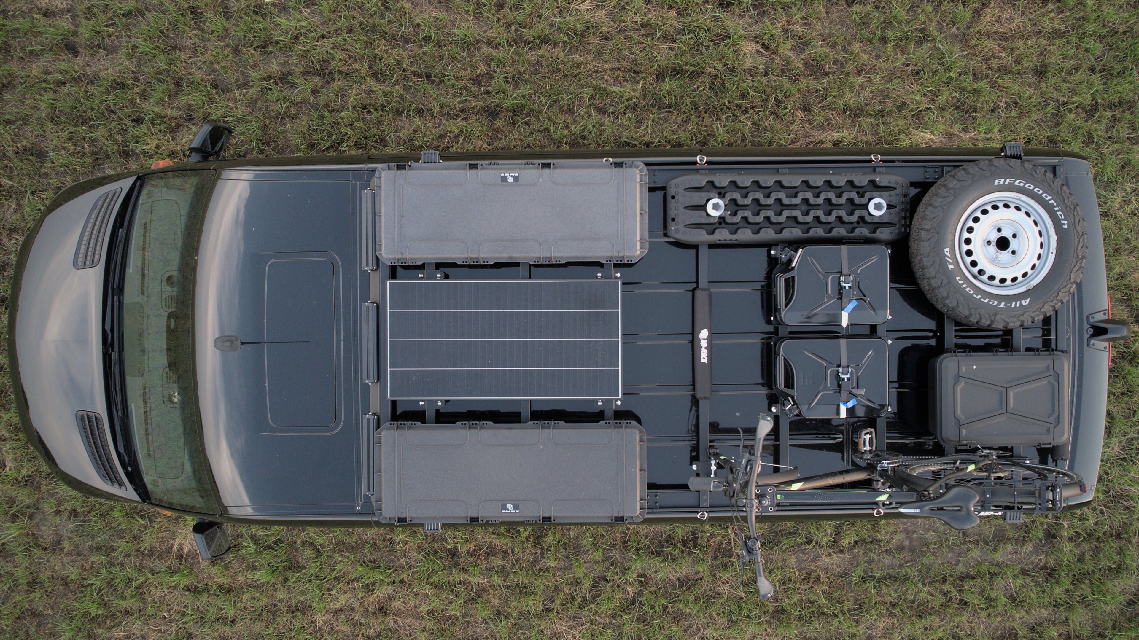 Wenn du Offroad-Pisten fährst und autark sein möchtest, brauchst du Platz. Und die bietet dir ein Dachträger auf deinem Camper – für Reserverad, Fernscheinwerfer, Traktionshilfen und Co. Mit den Universal-Halterungen kannst du nahezu alles sicher auf deinem Van befestigen.
