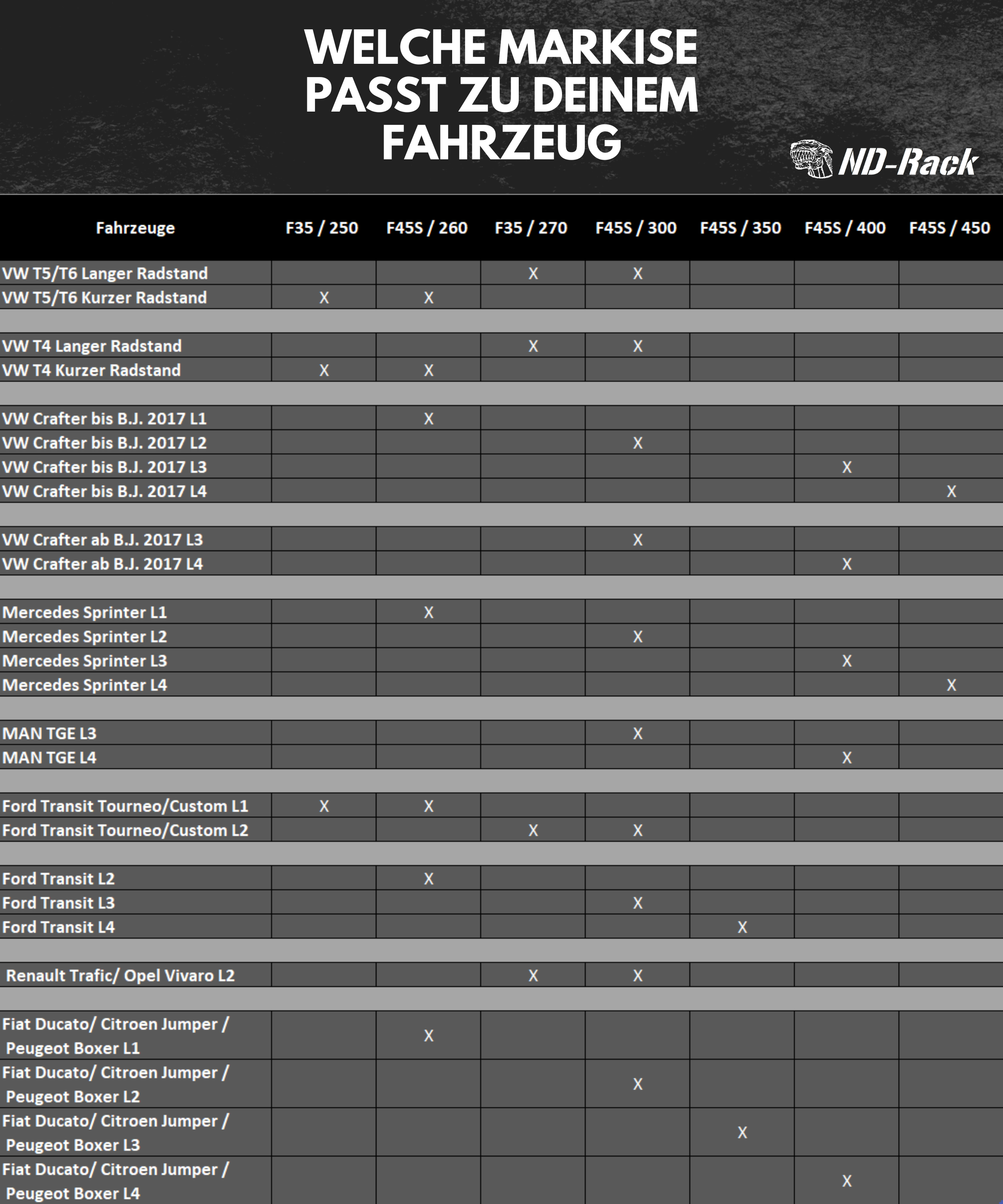 - Mit den ND-Rack Markisenhaltern direkt am Dachträger montierbar