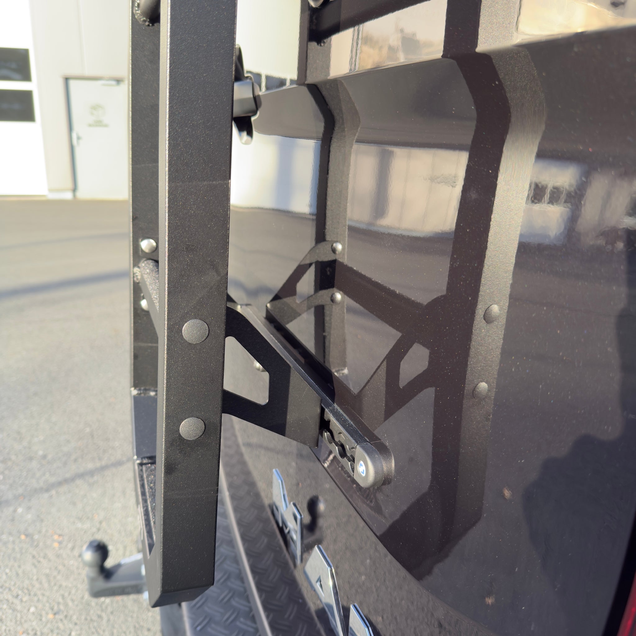 Die ND-Rack Heckleiter ist die ideale Lösung für alle TGE-Fahrer, die regelmäßig auf das Fahrzeugdach über die Heckklappe zugreifen müssen, egal ob für Dachboxen, Solarpanels oder Dachzelte.