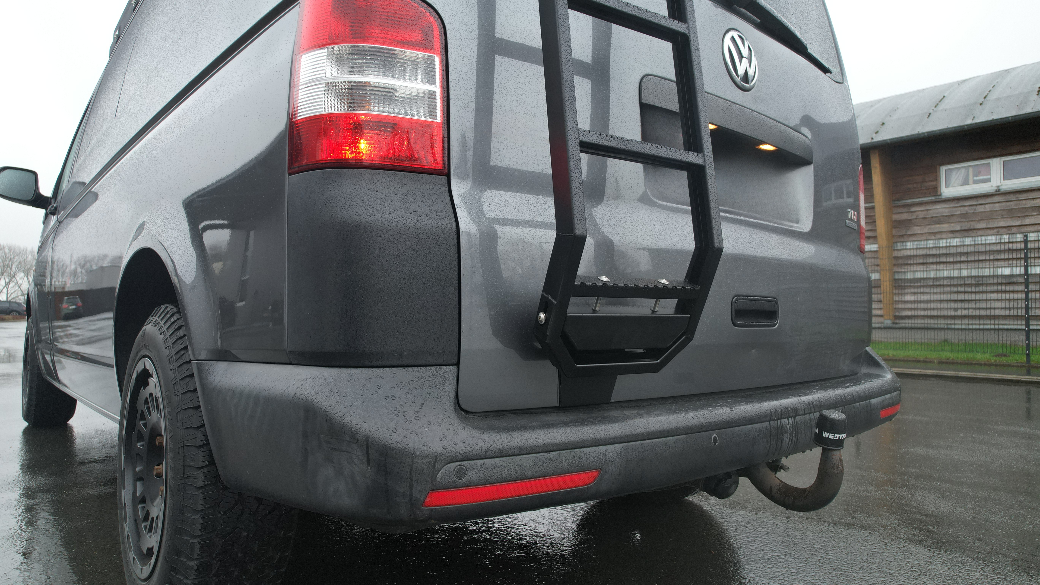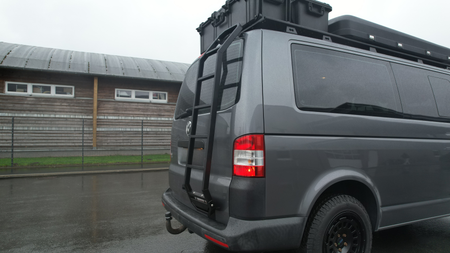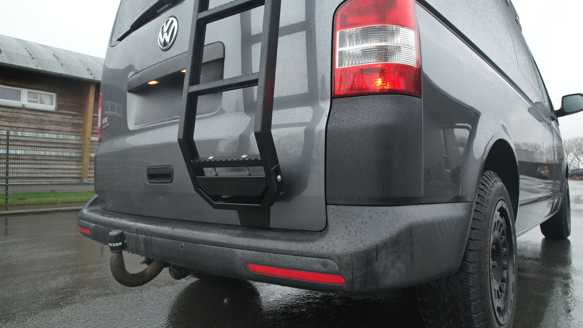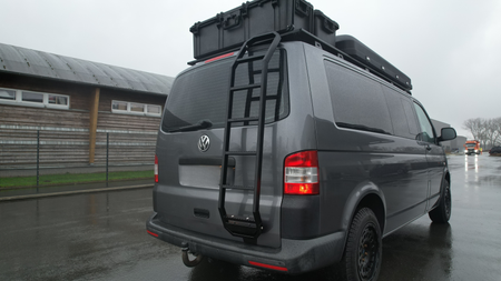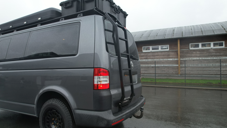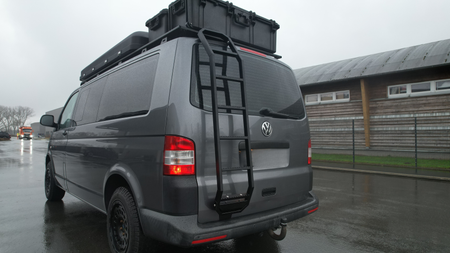 Ob Dachgepäckträger, Solaranlage oder Dachzelt – mit unserer Heckleiter für den VW T6 erreichst du bequem und sicher das Fahrzeugdach.